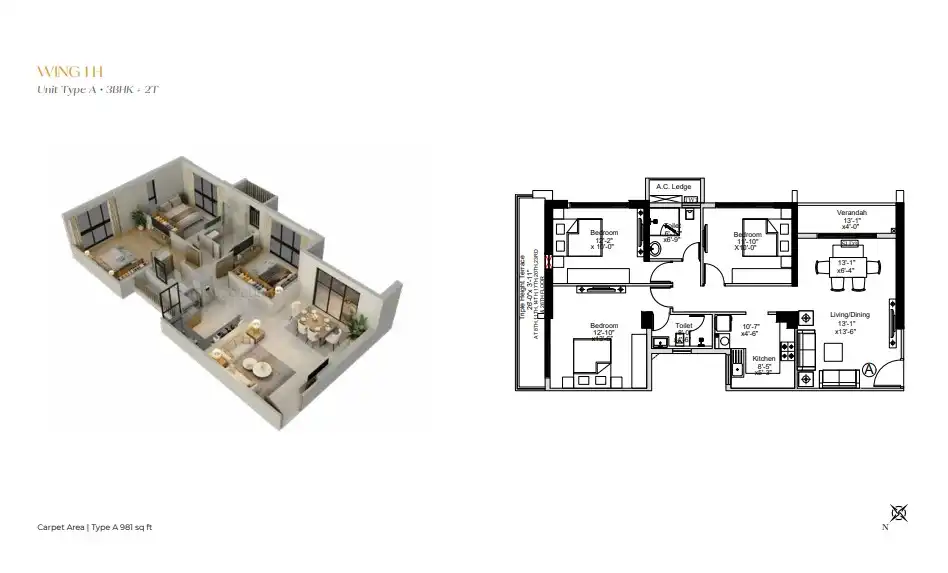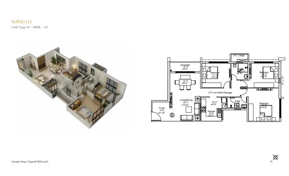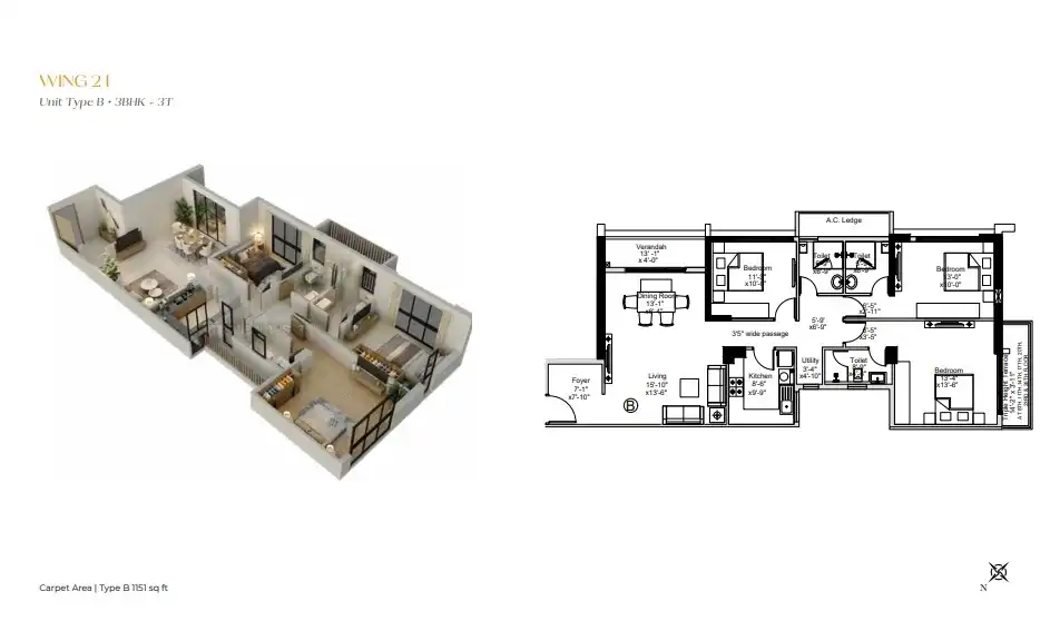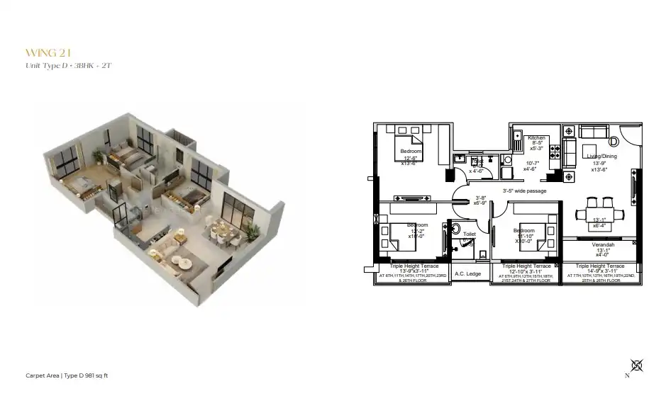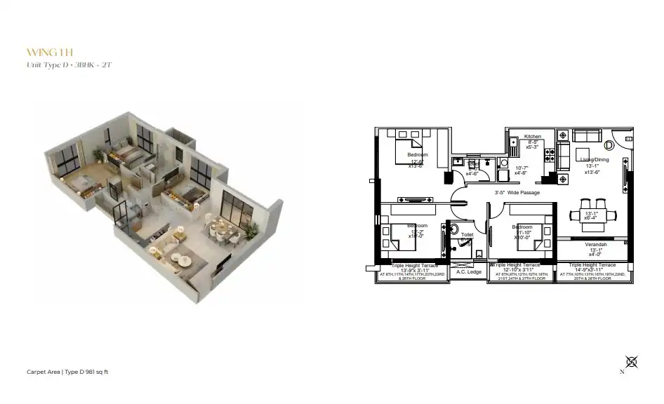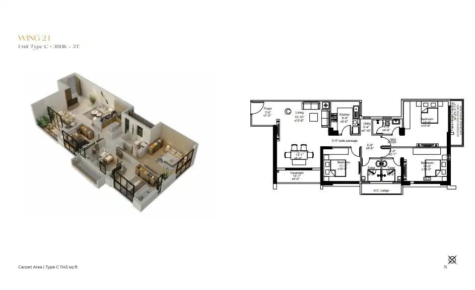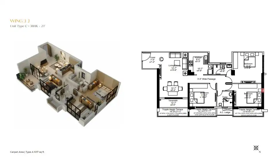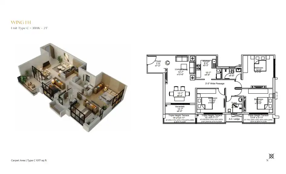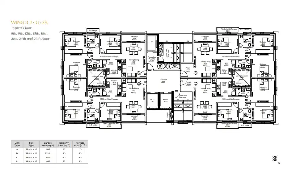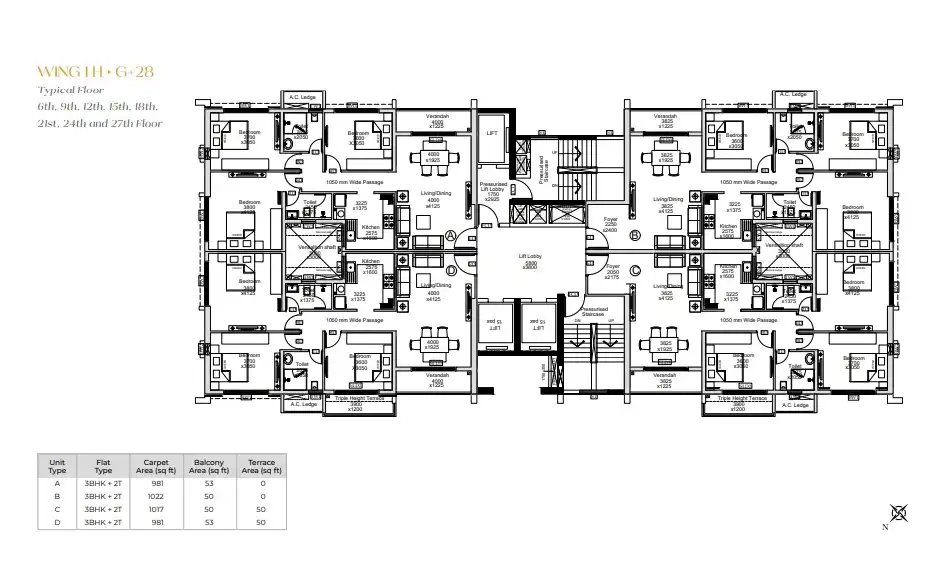 3 and 4BHK luxury apartments with super built-up areas up to 2269 sq. ft.
