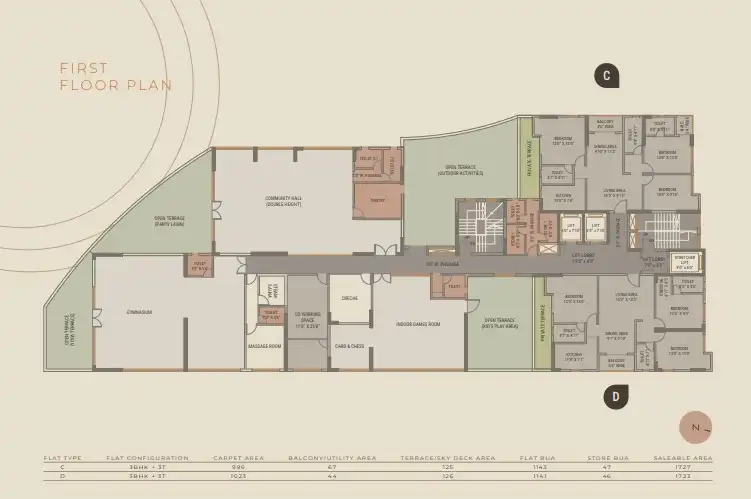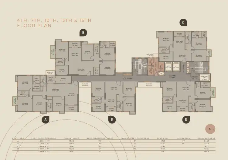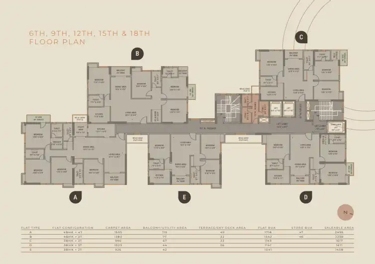 - 90 spacious 3BHK & 4BHK apartments in a B+G+18 tower.