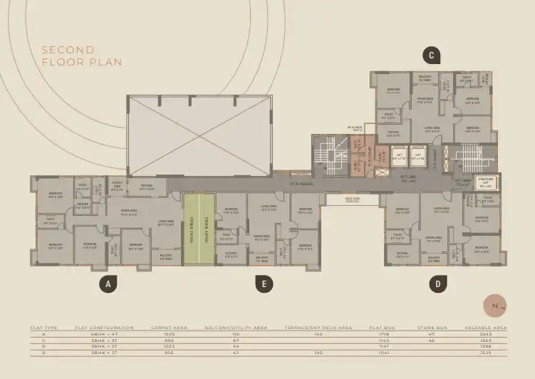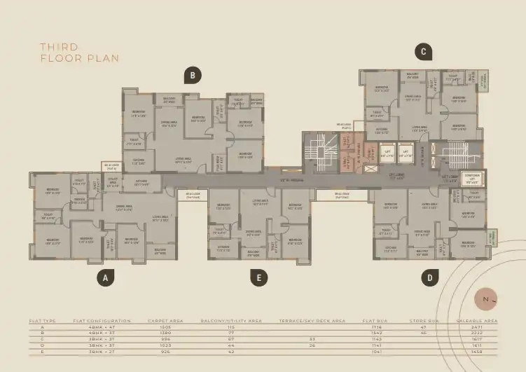 Spread across 52 Katha, Evara boasts a B+G+18 tower with 90 exclusive 3BHK and 4BHK apartments. With just 5 units per floor, each residence is meticulously designed to maximize natural light, ventilation, and functionality. Expansive balconies offer breathtaking green views, while triple-height sky balconies on alternate floors provide a unique connection with nature.