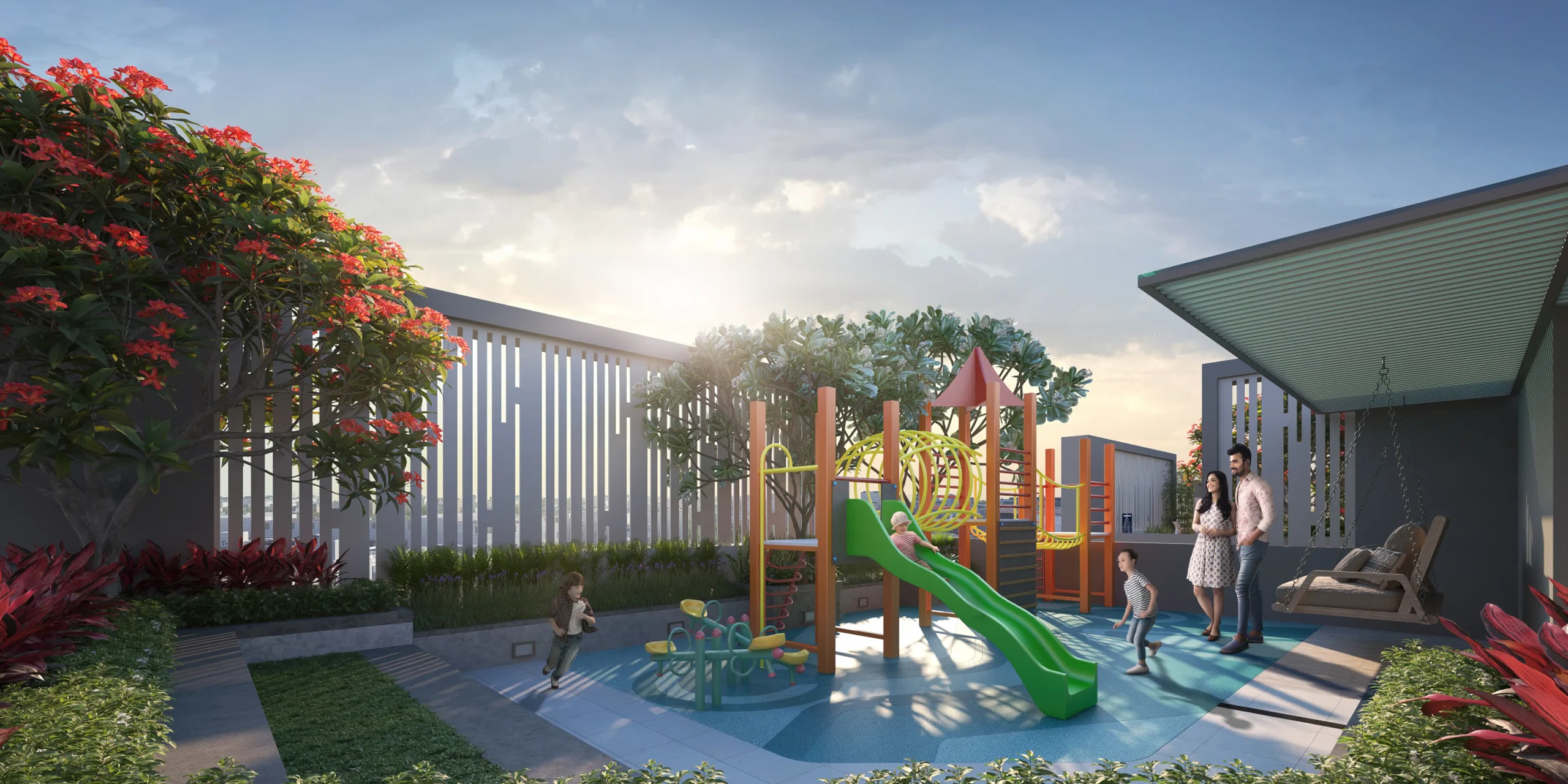 The vertical façade highlights Evara’s architectural excellence, setting it apart as a landmark in Kolkata’s skyline. A rooftop lifestyle club featuring an infinity pool, wellness facilities, and community spaces such as a spill-over lawn enhances the premium living experience.