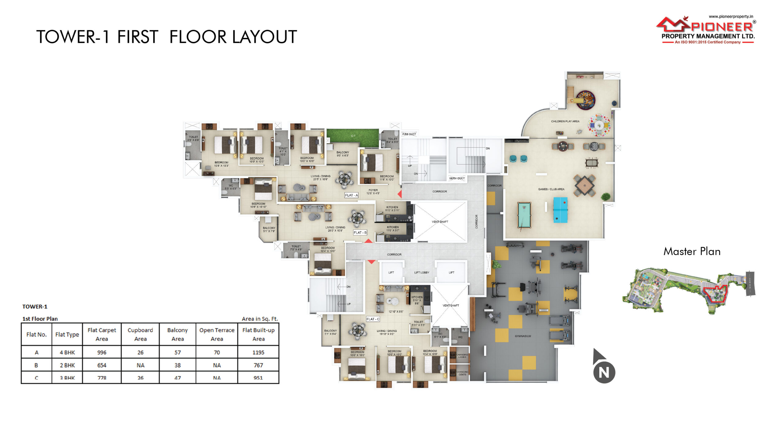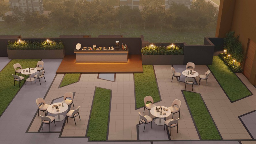 Offering spacious 2, 3, and 4 BHK apartments, the development is designed with meticulous attention to detail, ensuring comfort and modern living. With seamless connectivity to major transport hubs and an array of thoughtfully curated amenities, residents will enjoy MLCP parking, a landscaped garden with a lawn, a kids' play area, a yoga deck, a swimming pool, a jogger's track, a fully equipped gym, a barbecue zone and recreational options like table tennis and foosball. The rooftop pool and party zone provide the perfect setting for relaxation and entertainment.
